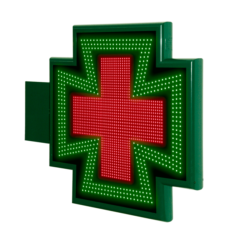 La cruz presenta orlas de color verde y centro rojo con animaciones 2D que puedes controlar desde un ordenador con Windows. Mediante la programación podrás elegir entre multitud imágenes pregrabadas, mostrar textos en la cruz y controlar el modo de horario. Además, cuenta con regulador automático del brillo. Y opción manual para el modo de »farmacia cerrada».