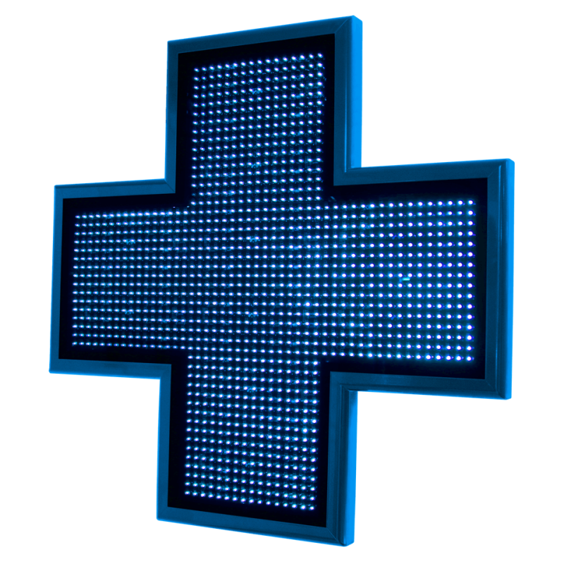 Cruz de veterinaria monocolor del led color azul con 2.560 LEDs radiales de 5 mm que alumbran un total de 26.880 candelas. El ciclo de vida de estos LEDs es de 100.000 horas.